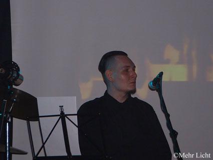 Geoffroy, assisté de Pierre, a ouvert la soirée en prenant place derrière un pupitre frappé aux armes de Dernière Volonté. Il alterna chant et percussions pendant presque une heure.